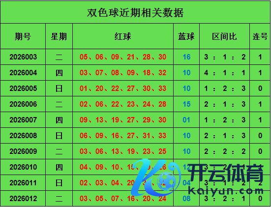 双色球上期开出奖号:03 05 07 16 20 24+08,区间比是3 : 2 : 1,莫得开出连号.
