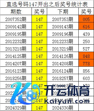 一、体彩罗列三第2024329期奖号为147,该号码历史上直选出现了13次世界买球站体育信息,组选出现了51次。