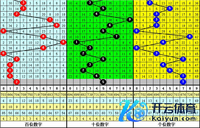 从上表不错看出,组选号码147开出之后,出现次数最多的三个号码隔离为:047,本期防这三码中落号;出现次数最少的三个号码隔离为:968,本期展望这三个号码不会同期出现,本期杀一码:9。