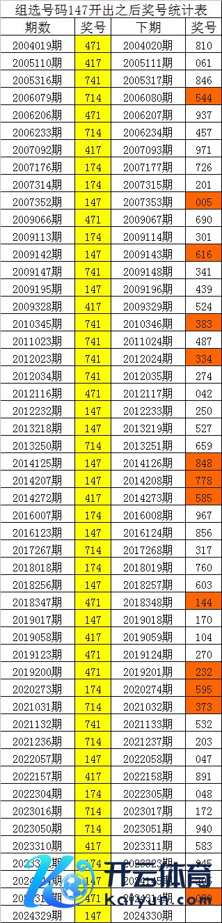 从上表统计不错看出,直选号码147开出之后,其下期奖号: