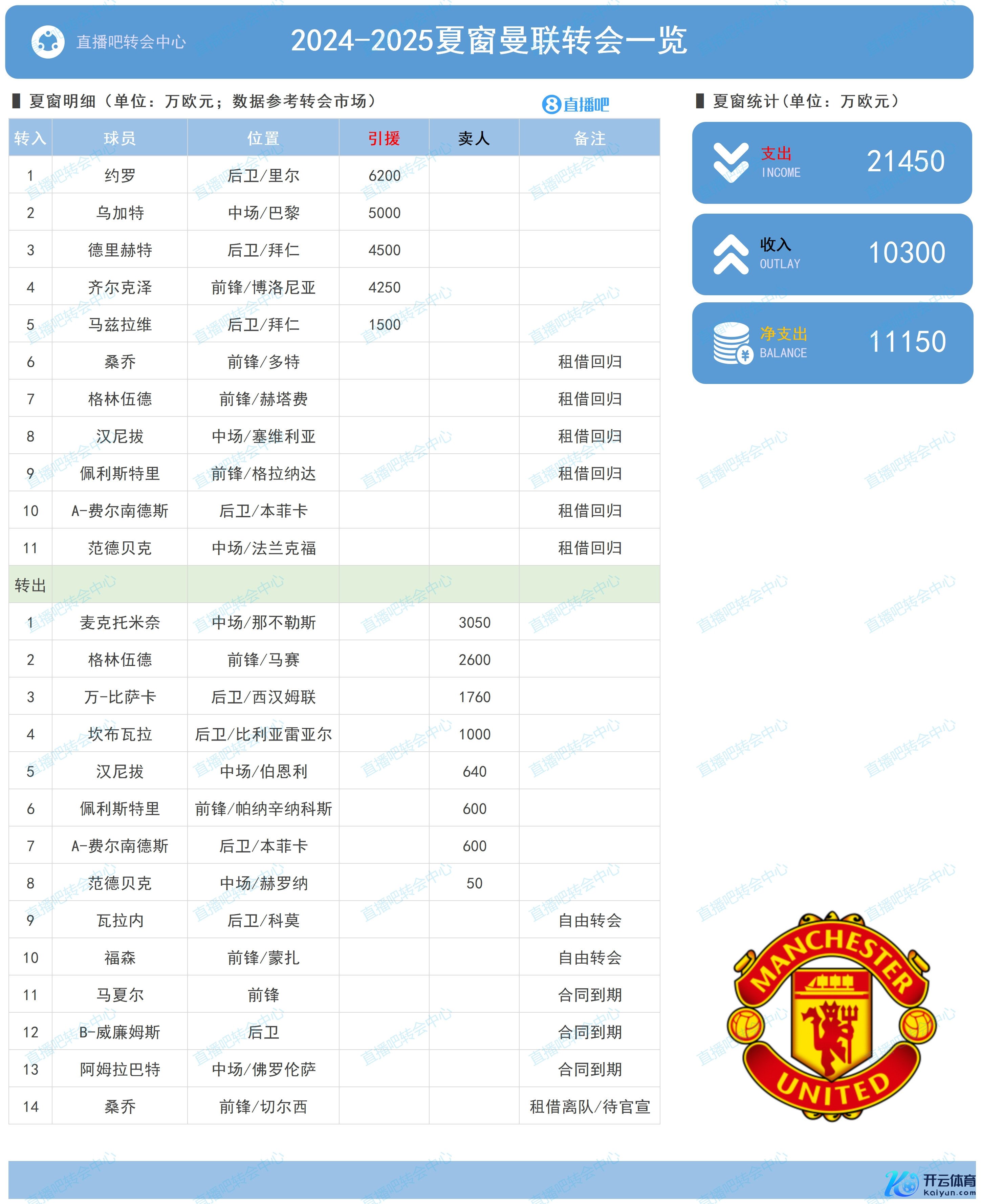 据悉,曼联在1月的转会窗口莫得预算来补强球队,原因是夏窗他们照旧破耗超2亿英镑签下5名球员,这使得他们在接下来的转会窗口莫得阔气的资金。