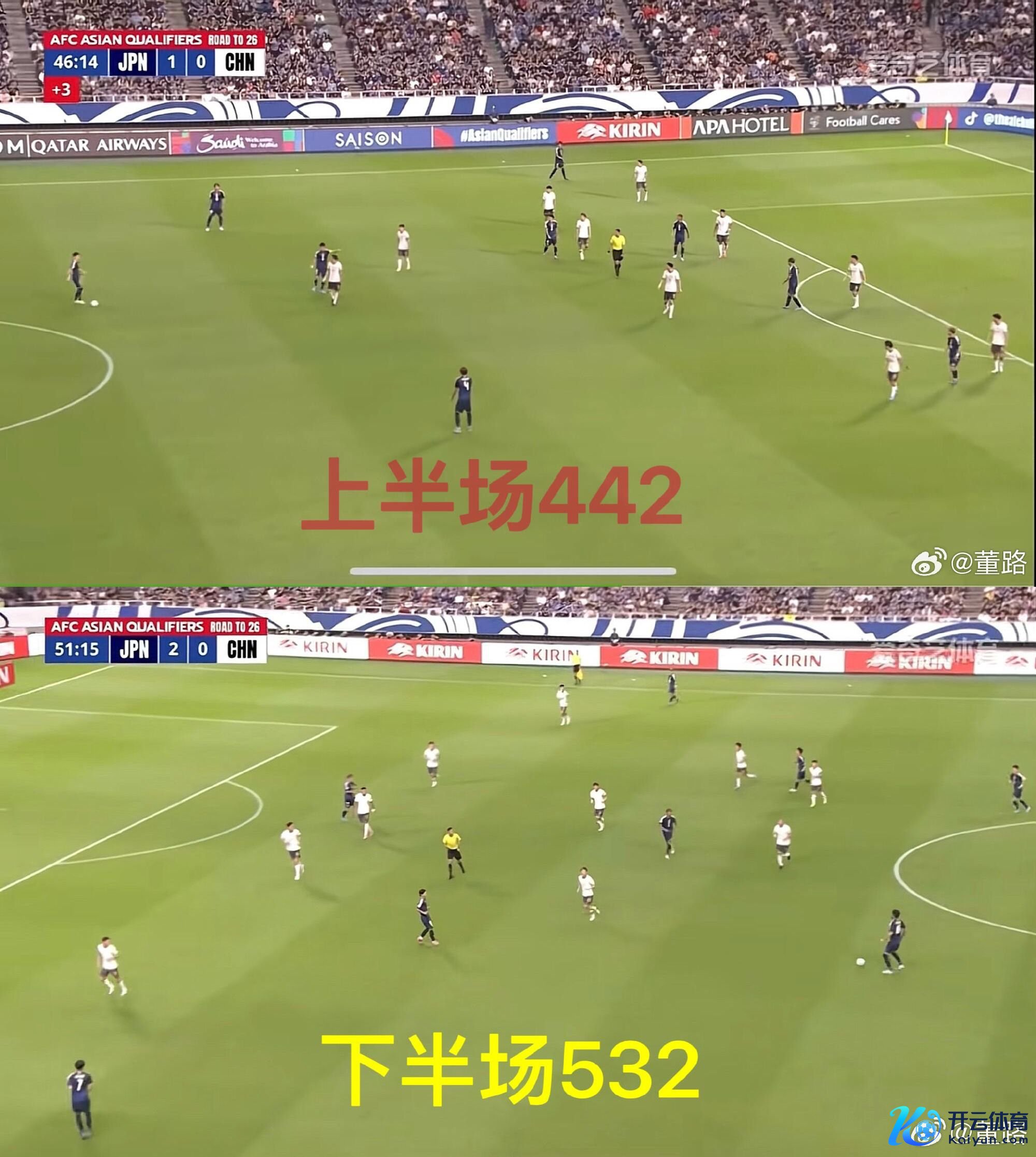 一个容易被忽略的事实是:其实国足第一场对日本的下半场,就也曾将阵型从启动的四后卫(442)改成了五后卫(532)