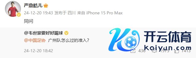 12月20日讯 韦世豪发声质疑后,严鼎皓转发韦世豪微博质疑足协准入。