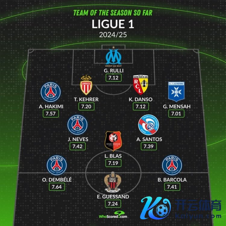 12月20日讯 今年度的法甲联赛比赛任务如故放荡,whoscored也列出了本赛季于今的法甲评分最好阵,巴黎4将入围,切尔西外租的桑托斯在列。