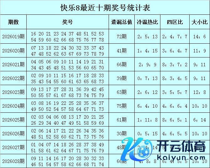 福彩振奋8第2026028期开奖记忆:09 11 14 16 17 20 28 30 32 33 46 51 54 57 58 62 66 68 71 74体育录像/图片,其中奖号遗漏总值为66,冷温热码比为4:8:8,四区比为6:4:5:5。