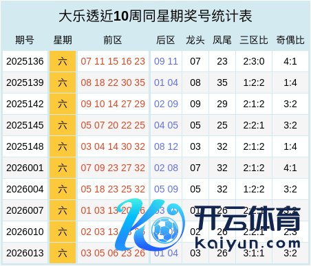 大乐透近十周同星期奖号统计表