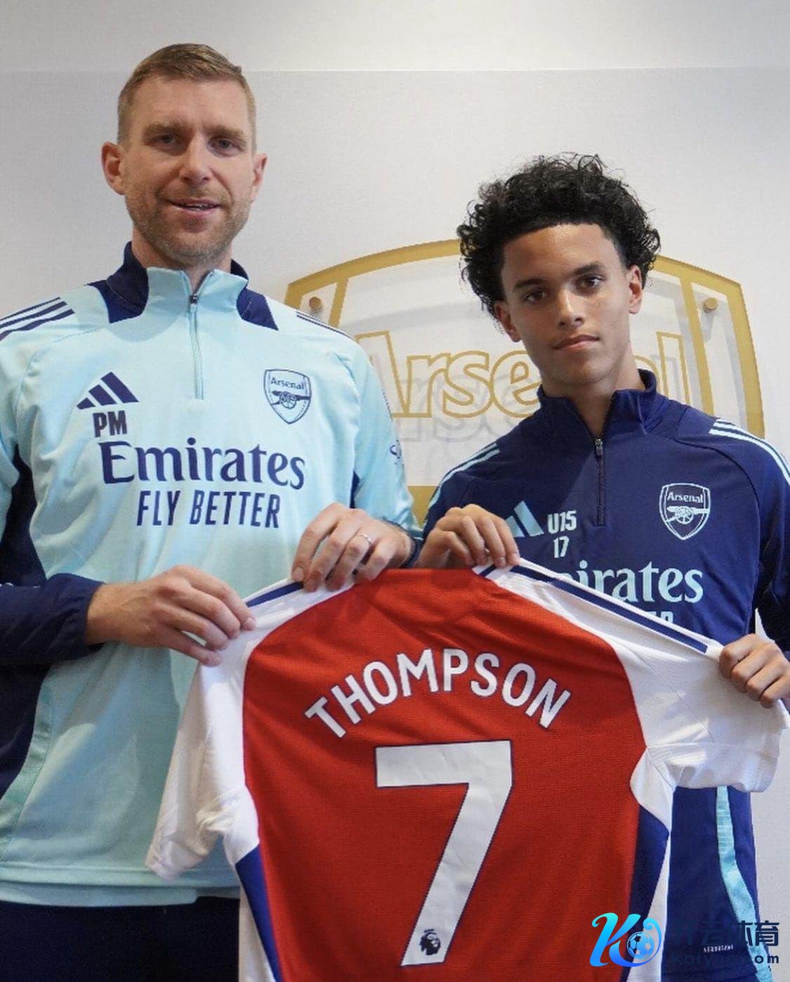 跟队:阿森纳打败曼城从西汉姆引进的15岁天才左脚边锋Kyran Thompson。