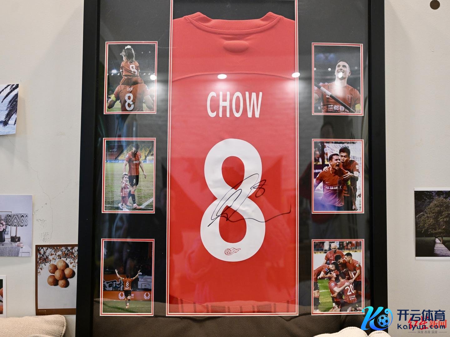 ▲沈庆新特意把周定洋的签名球衣装裱起来